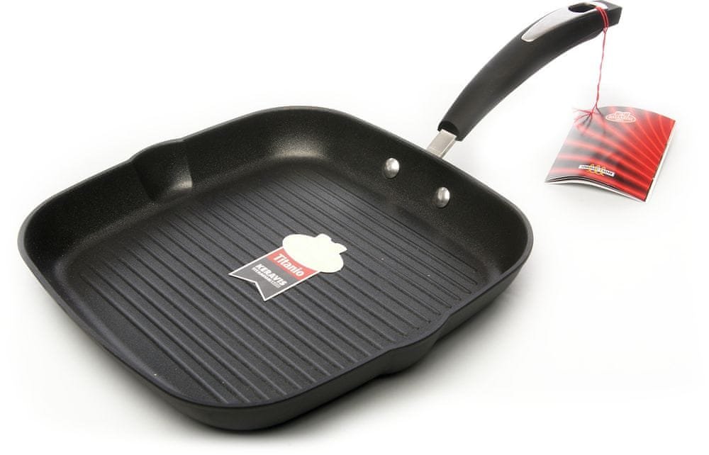 Titanová pánev na indukci je určena na všechny druhy sporáků a dokonce i do trouby. Nádobí se může pyšnit povrchem Keravis titanio BASE, který snese použití kovového náčiní a neobsahuje TEFLON ani těžké kovy.