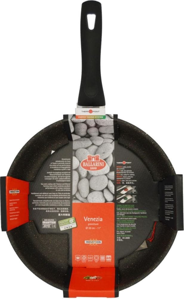 Hluboká pánev Venezia Granitium je vhodná na všechny sporáky i do myčky a hlavně do trouby. Revoluční vnitřní povrch pánve značky Ballarini je odolný proti oděru a poškrábání.